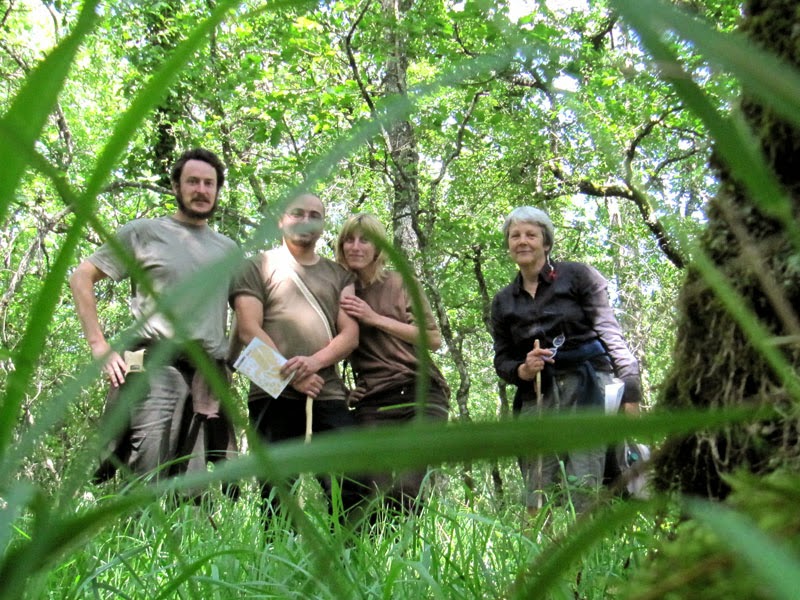 Après avoir grimpé en file indienne le long du flanc de la colline en trouvant les traces du campagnol, du chevreuil et de la martre, nous nous arrêtons pour scruter des oreilles le paysage sonore. Les geais, le coucou, le loriot, le pinson des arbres, la mésange bleue, le rougequeue à front blanc, la grive musicienne et même un faisan de colchide étaient eux aussi au rendez-vous !